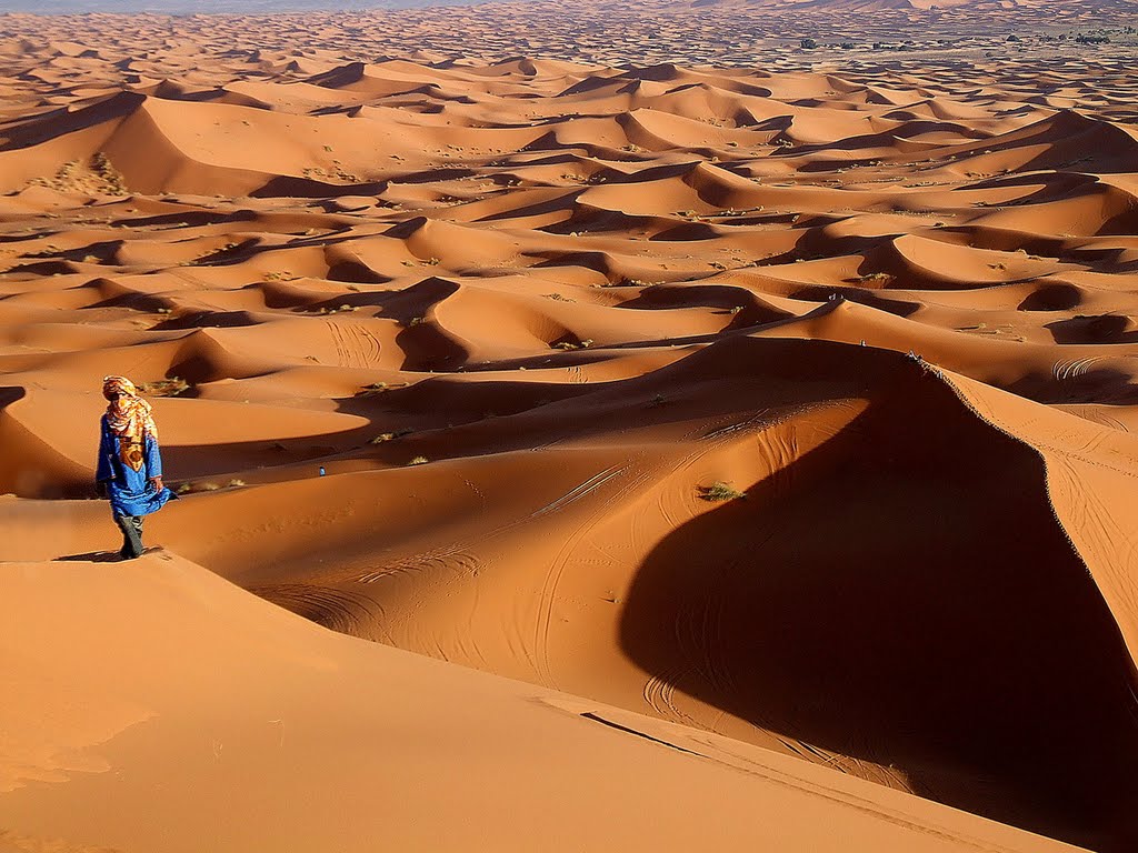 Today we head south, towards the Sahara desert, crossing the mountains of the Middle Atlas and enjoying breathing the pure air that comes from the cedar forests, we will also pause to have a time of an hour with the monkeys, stops to take Pictures in splendid panoramic views, driving through the valley of Ziz and palm grove of Tafilalet (great oasis), reaching the dunes of Erg Chebbi, the great dunes of Merzouga. Accommodation in a hotel.